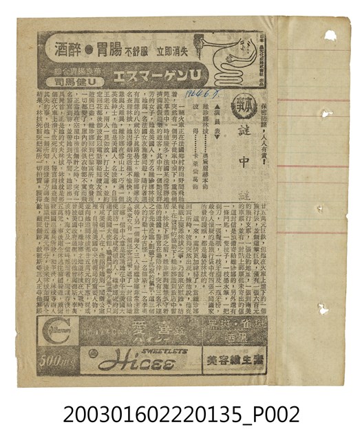 《謎中謎》是由史丹利杜寧(Stanley Donen)執導,卡萊倫葛(Cary Grant)、奧黛麗赫本(Audrey Hepburn)等主演的愛情懸疑喜劇片,描述在巴黎的一位風姿綽約的美國女人遭遇丈夫離奇死去且留下一堆謎團待解的故事。下方另有藥品廣告。
