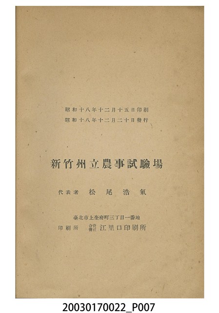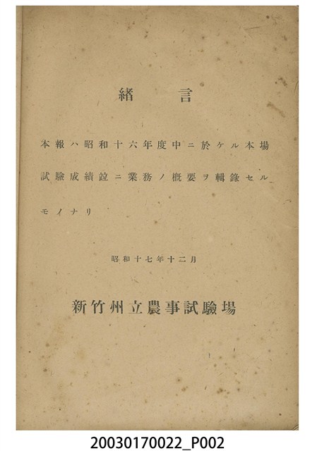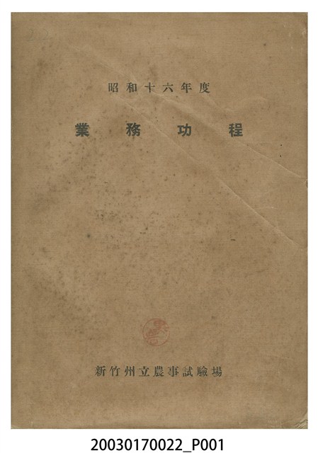 2003.017.0022 新竹州立農事試驗場編纂《昭和十六年度度業務功程》