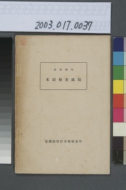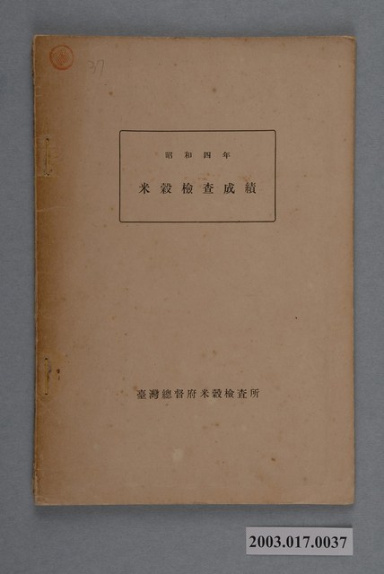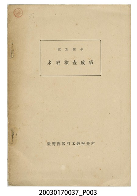 2003.017.0037 臺灣總督府米穀檢查所編纂《昭和四年米穀檢查成績》