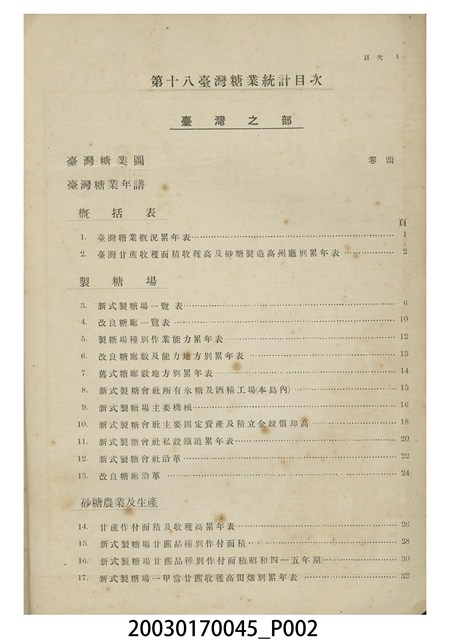 2003.017.0045 昭和5年3月31日第十八《臺灣糖業統計》