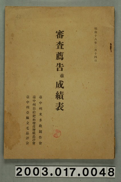 2003.017.0048 砥上次雄編審查薦告並成績表