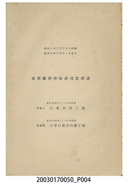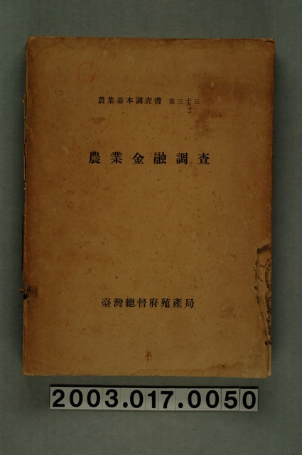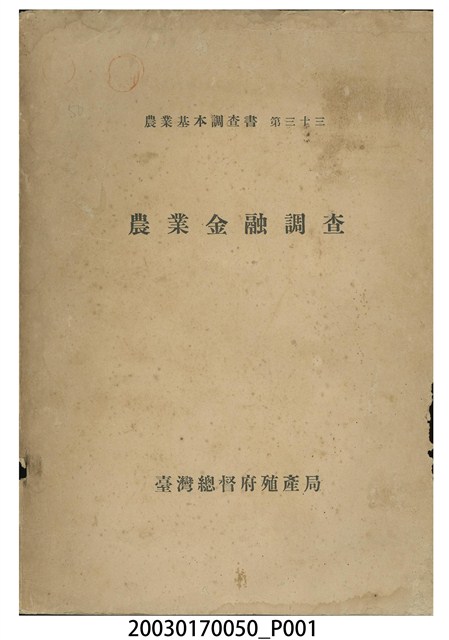 2003.017.0050 臺灣總督府殖產局農務課編《農業金融調查》