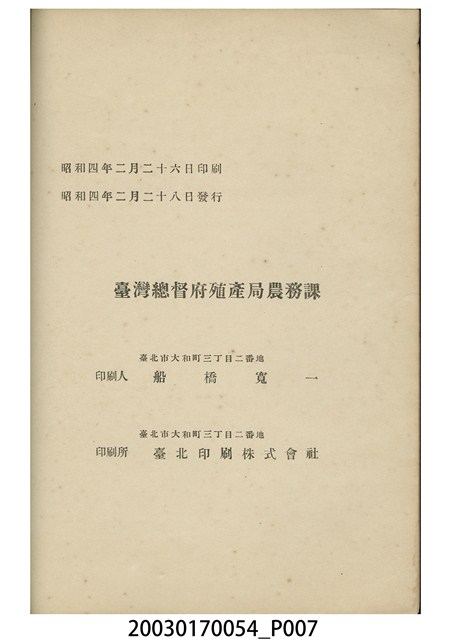 2.殖產局為日治時期臺灣總督府所屬機關,主管臺灣產業相關事項。其最初為民政局殖產部,後改為殖產課,明治34年(1901)改為民政部殖產局。大正8年(1919)民政部廢止,殖產局直屬臺灣總督府。殖產局的主要農產物調查共有水稻、甘藷、甘蔗、香蕉、苧麻、茶及豬等7項,本書係依據1925及1926兩年度殖產局養豬調查資料編輯而成。