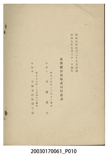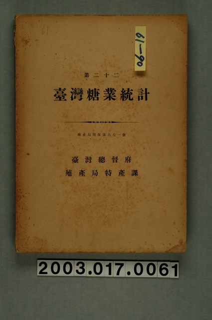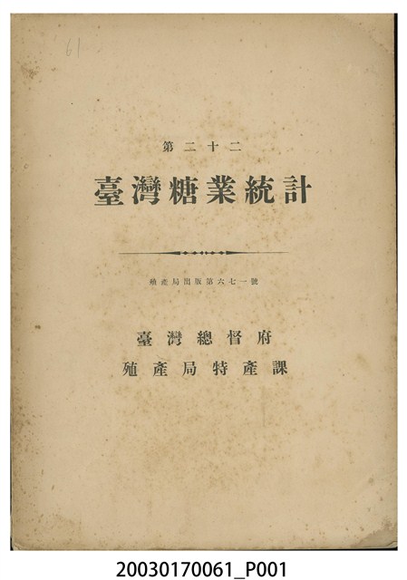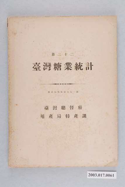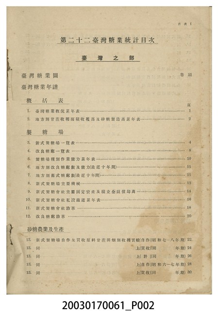 2003.017.0061 昭和9年7月31日第二十二《臺灣糖業統計》