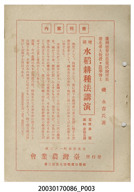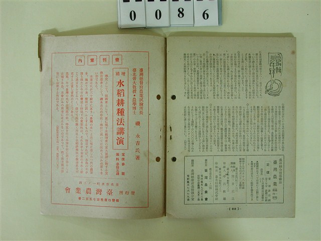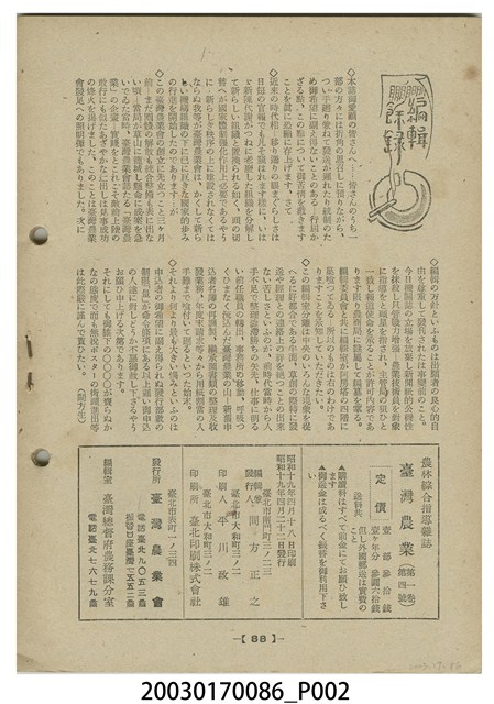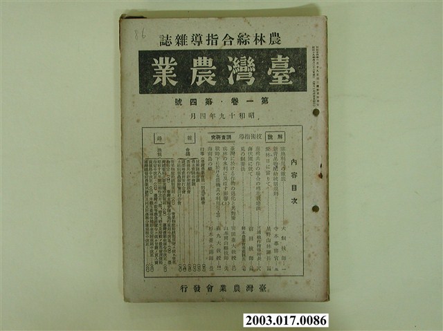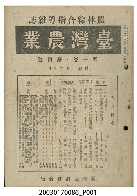 2003.017.0086 臺灣農業會發行《臺灣農業》第1卷第4號