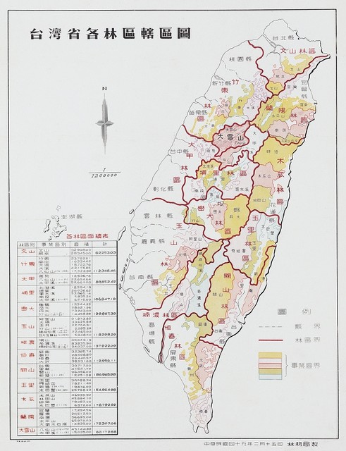 林務局〈一百二十萬分一台灣省各林區轄區圖〉