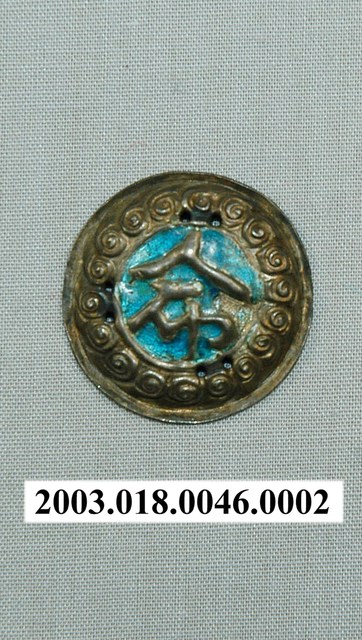 本文物為命字琺瑯飾品,為一圓形內寫有一字,上方有圍繞成一個圈的螺旋紋,其內皆塗有琺瑯,並寫有「命」字,應為裝飾用的飾品。臺灣原住民及漢人皆會帶配飾,而就漢人而言女性使用飾品的比率比男性高。傳統社會中女性配戴的首飾,代表家族的財富及地位,尤其在嫁娶之時,以金銀飾品作為聘禮也十分常見。因此,飾品不但反映當時社會的審美觀,也是女性及其背後家族之社會地位之象徵。