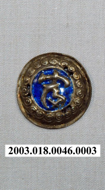 本文物為富字琺瑯飾品,為一圓形內寫有一字,上方有圍繞成一個圈的螺旋紋,其內皆塗有琺瑯,並寫有「富」字,應為裝飾用的飾品。臺灣原住民及漢人皆會帶配飾,而就漢人而言女性使用飾品的比率比男性高。傳統社會中女性配戴的首飾,代表家族的財富及地位,尤其在嫁娶之時,以金銀飾品作為聘禮也十分常見。因此,飾品不但反映當時社會的審美觀,也是女性及其背後家族之社會地位之象徵。