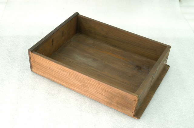 本文物為下層右上抽屜,位於梳妝桌下層。該層有五個抽屜,排列呈現凹字形,上面三個抽屜下面兩個較小的抽屜,連接四隻桌腳,且附加腳踏墊。梳妝臺為女性化妝時所用之家具,傳統臺灣社會中時常被當作女性的嫁妝,其製造方式、形制、裝飾都是男方家庭評斷女方財力的標準之一。