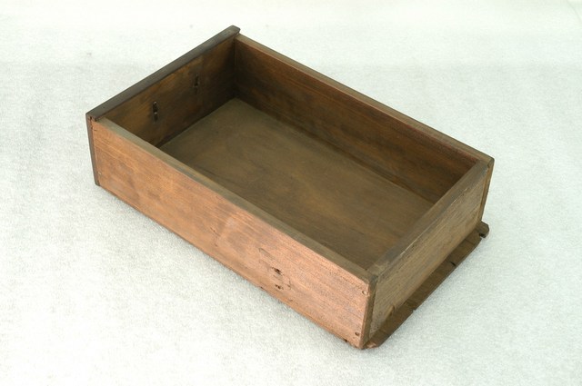 本文物為下層右下抽屜,位於梳妝桌下層。該層有五個抽屜,排列呈現凹字形,上面三個抽屜下面兩個較小的抽屜,連接四隻桌腳,且附加腳踏墊。梳妝臺為女性化妝時所用之家具,傳統臺灣社會中時常被當作女性的嫁妝,其製造方式、形制、裝飾都是男方家庭評斷女方財力的標準之一。