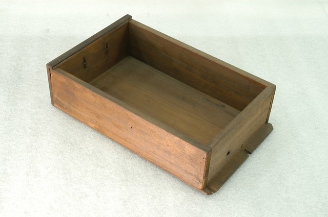 本文物為下層右下抽屜,位於梳妝桌下層。該層有五個抽屜,排列呈現凹字形,上面三個抽屜下面兩個較小的抽屜,連接四隻桌腳,且附加腳踏墊。梳妝臺為女性化妝時所用之家具,傳統臺灣社會中時常被當作女性的嫁妝,其製造方式、形制、裝飾都是男方家庭評斷女方財力的標準之一。
