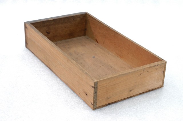 本文物為梳粧桌的下層中上抽屜,為木質製作,表面以黑色為底,刻有花草圖案,抽屜外設有半圓形握把,握把上刻有花紋。從背面的鐵釘可看出抽屜由四塊木板拼接而成,內外表面有些許的刮痕與污漬。用途為放化妝品和髮簪等裝飾物品。梳妝臺為女性化妝時所用之家具,傳統臺灣社會中時常被當作女性的嫁妝,其製造方式、形制、裝飾都是男方家庭評斷女方財力的標準之一。