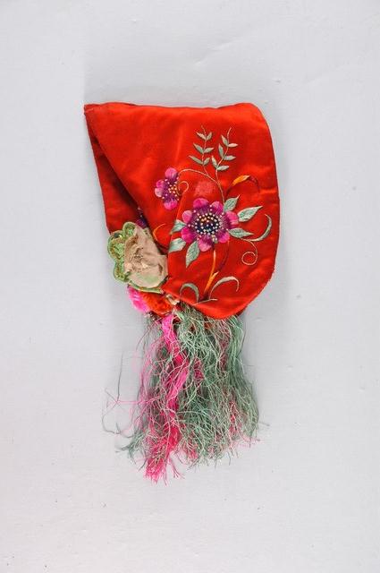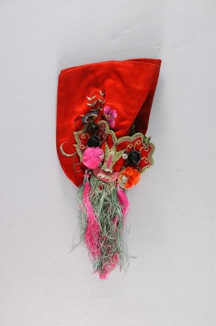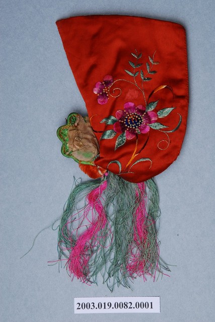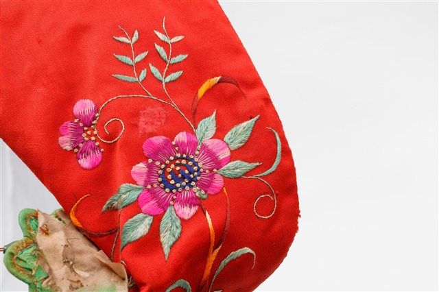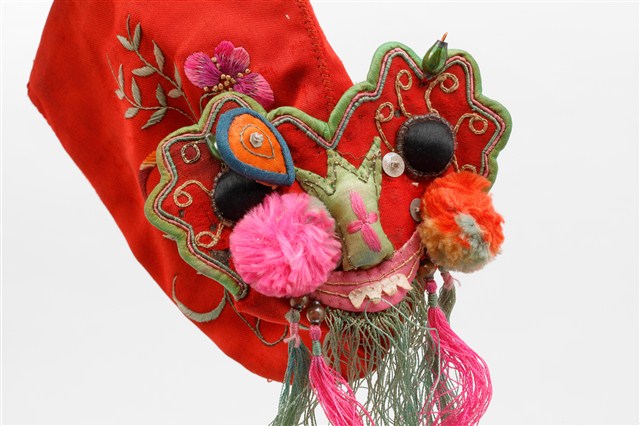 2003.019.0082.0002 紅地虎頭繡花嬰兒鞋套右腳