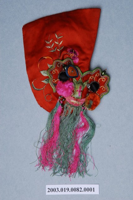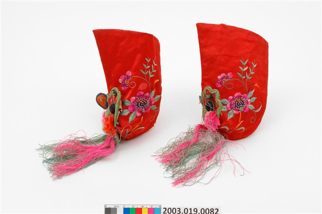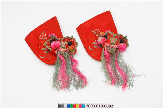 2003.019.0082 紅地虎頭繡花嬰兒鞋套