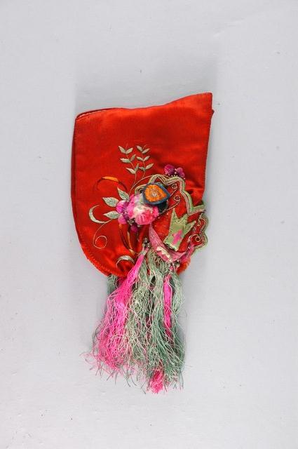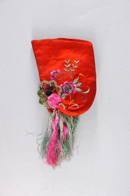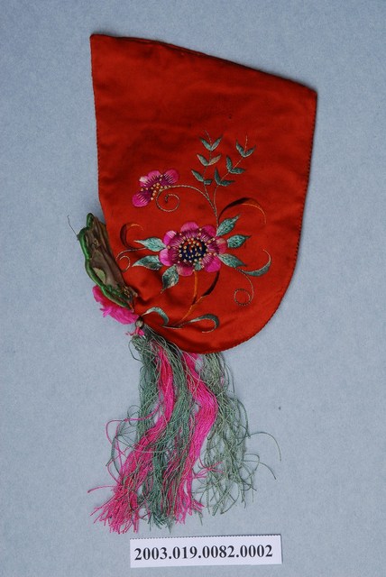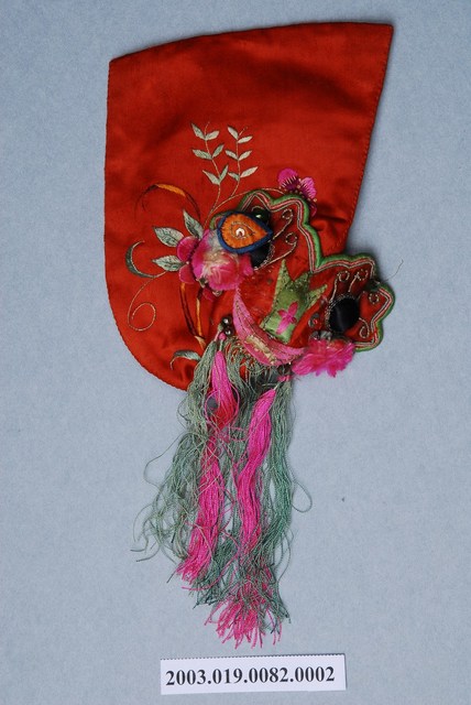 2003.019.0082.0002 紅地虎頭繡花嬰兒鞋套右腳