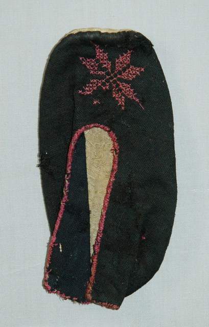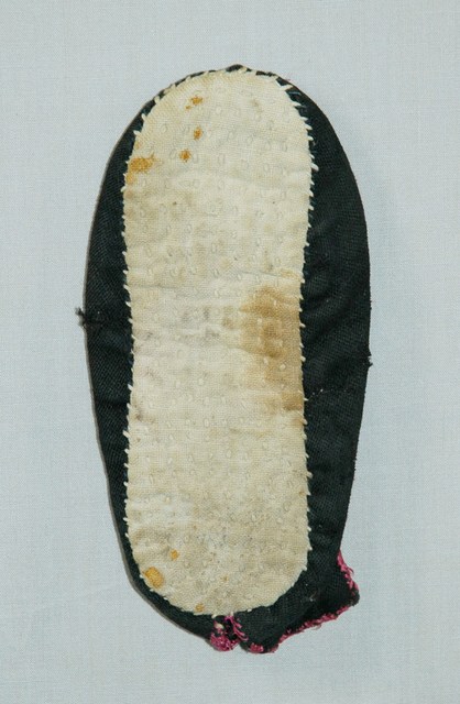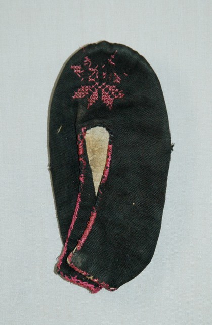 2003.019.0083.0002 黑棉地十字繡紋嬰兒鞋右足