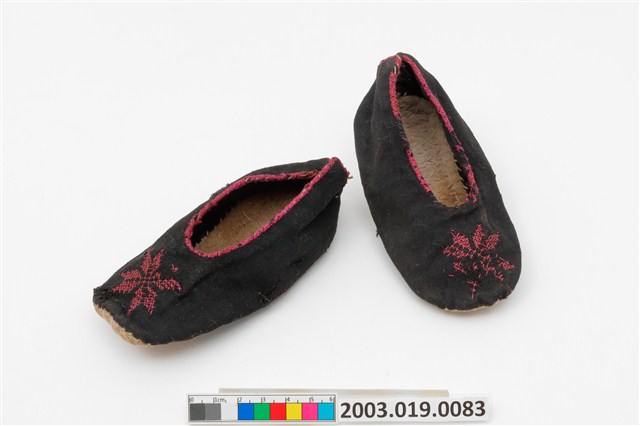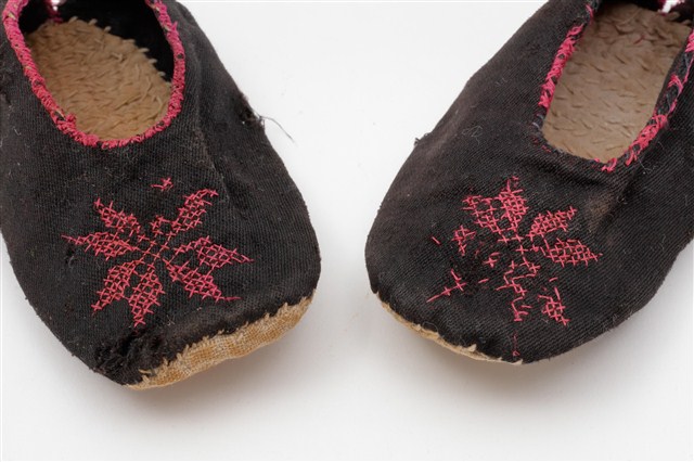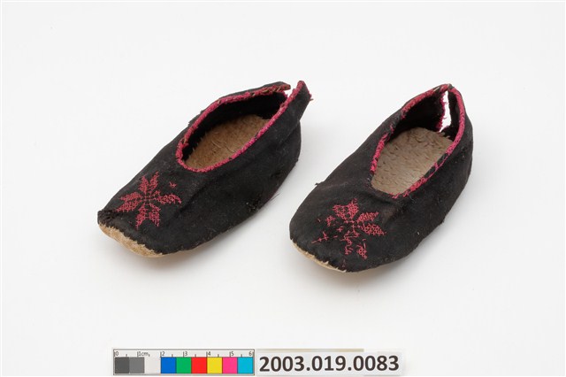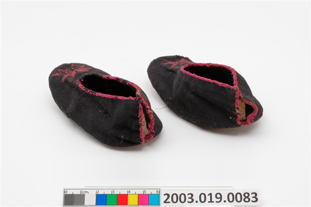 2003.019.0083 黑棉地十字繡紋嬰兒鞋