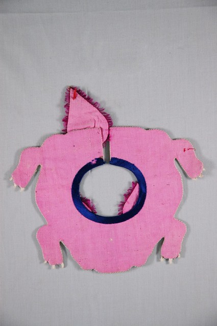 2003.019.0099 青綠絲緞祥獅彩繡圍涎