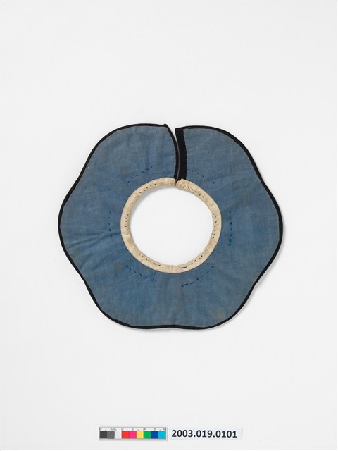 2003.019.0101 紅絲緞弧形彩繡圍涎