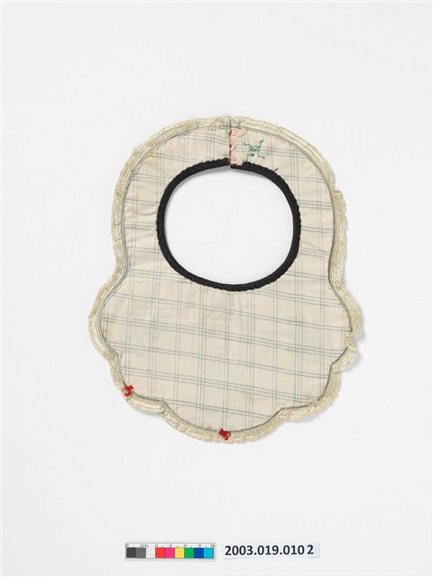 2003.019.0102 粉紅絲綢弧形彩繡圍涎