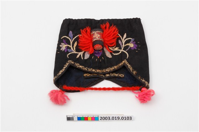 2003.019.0103 黑地盤金繡蝴蝶紋碗帽