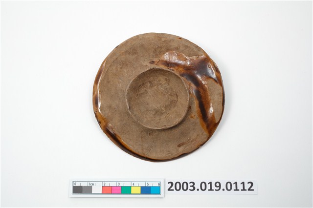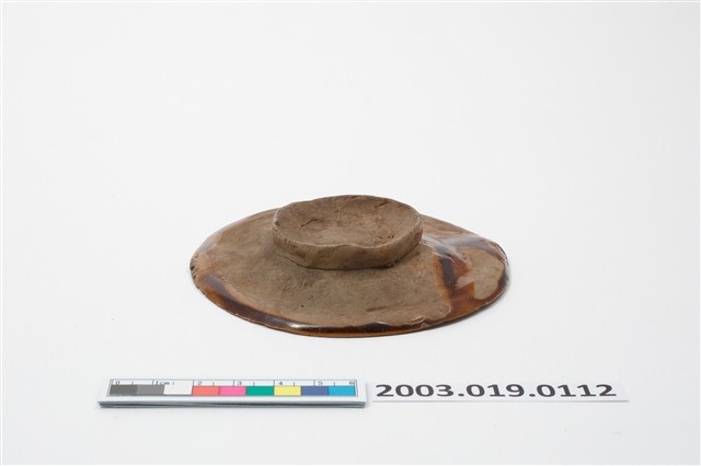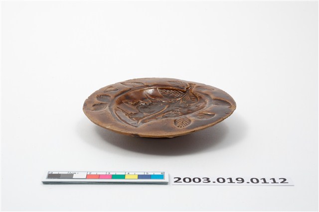 2003.019.0112 陶燒圓形單面雕桃紋帶鈕粿印