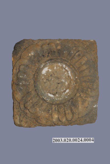 本文物為石燈籠的構件基礎,是日文漢字的名稱。基礎為石燈籠最底部的構件,上承竿。本件基礎底部為方形,上方刻蓮花飾。