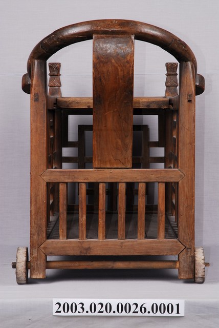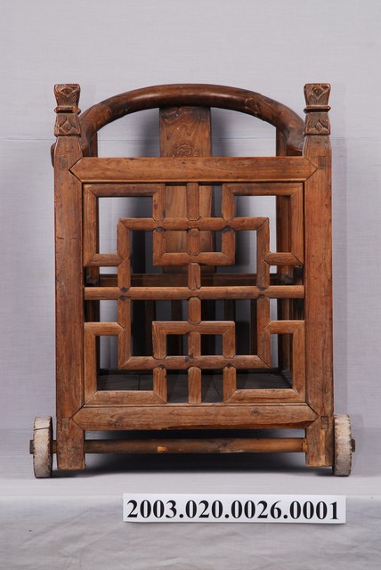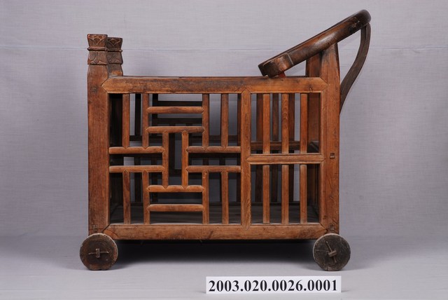 本文物為嬰兒車主體,由木材製作而成,使用許多木頭拼接,加以穩固。設計為四輪推車,嬰兒車的兩側扶把刻有花紋圖案,相當別緻。嬰兒車表面則有多處的刮痕與污漬。在傳統漢人社會中,哺育嬰孩常被視為婦女之重要工作,在嬰兒車普及之前,婦女往往使用嬰兒揹巾從事育兒及勞動工作,而嬰兒車的出現則方便撫育者無須時時刻刻揹著嬰孩,呈現臺灣育兒文化及相關用品的時代變化。