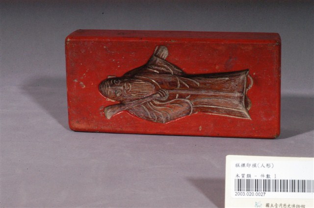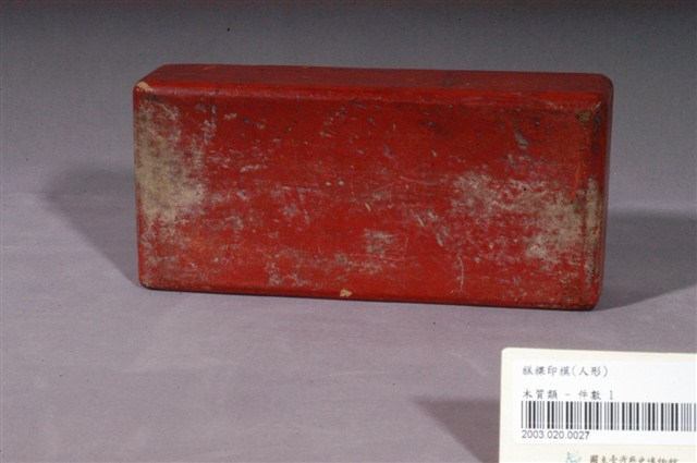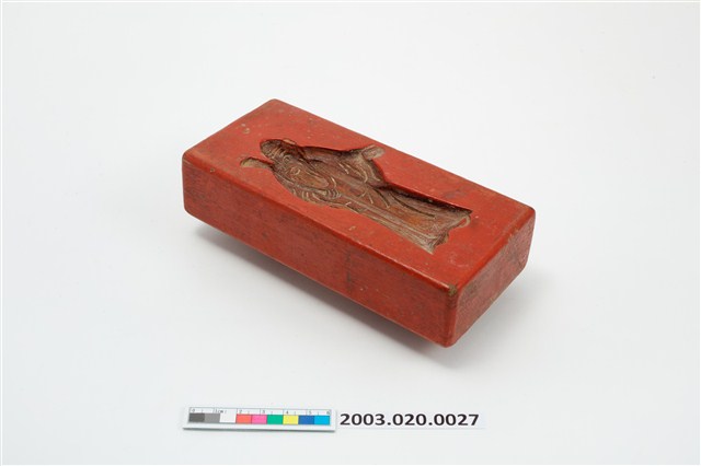 2003.020.0027 朱漆長方形單面雕壽仙無柄粿印