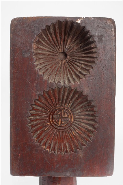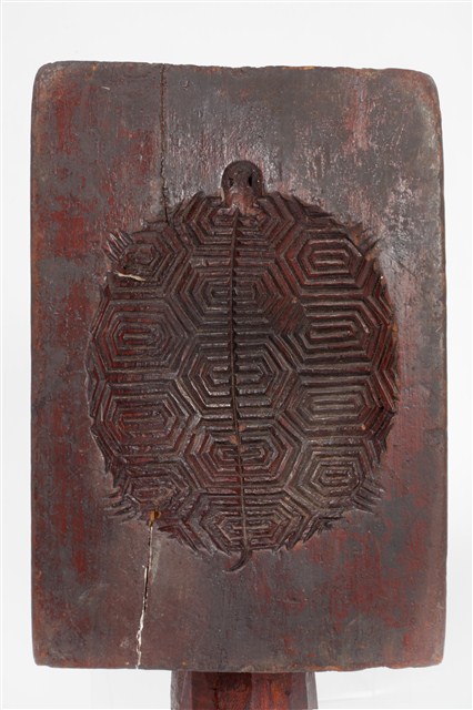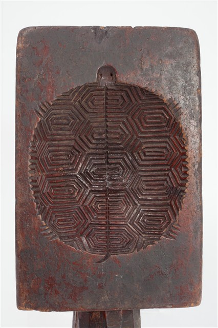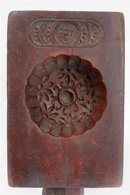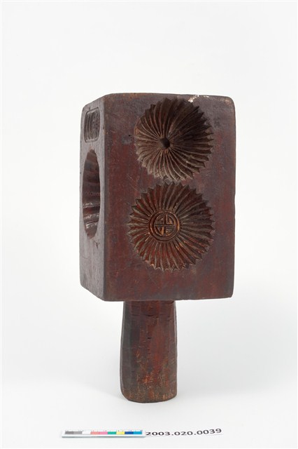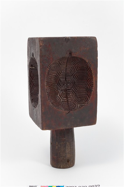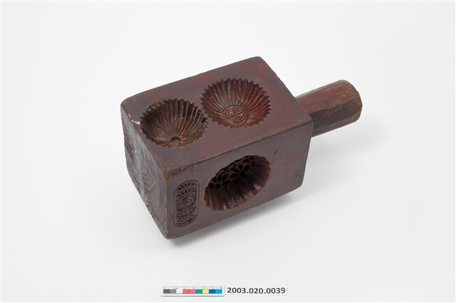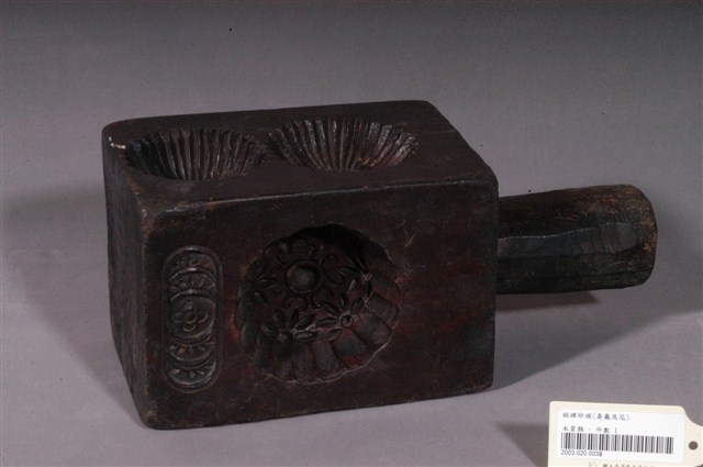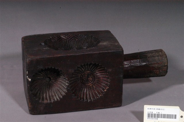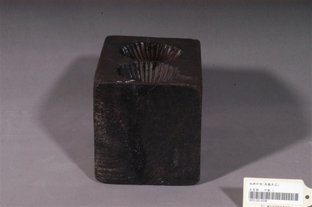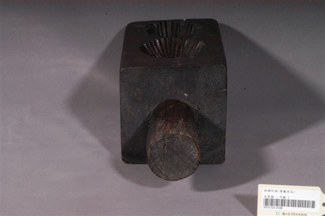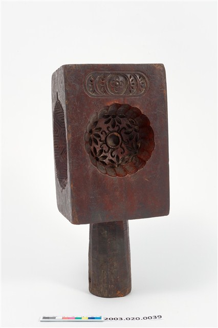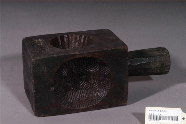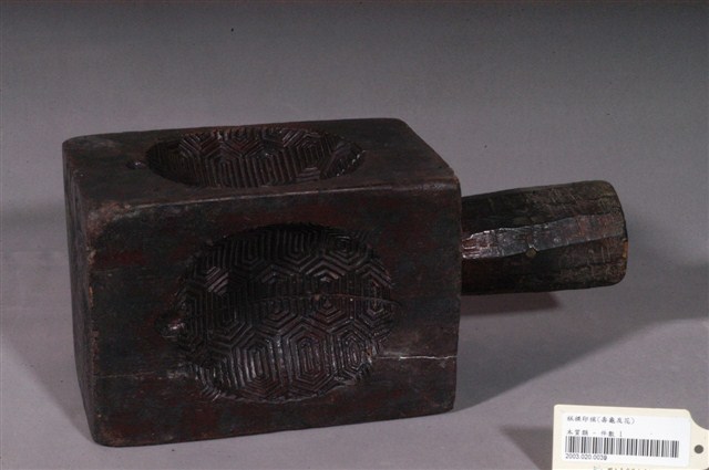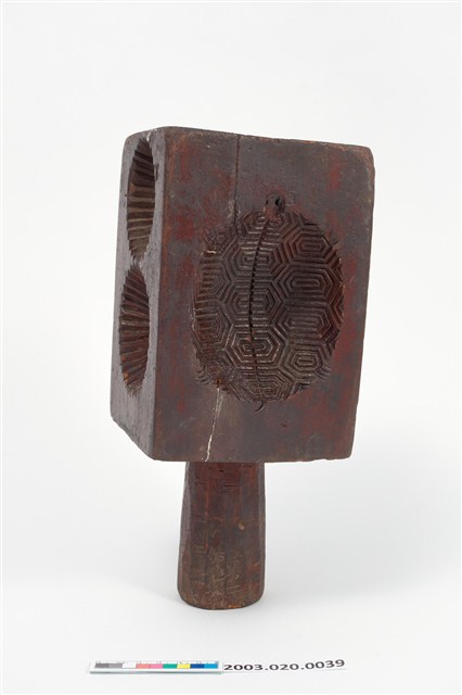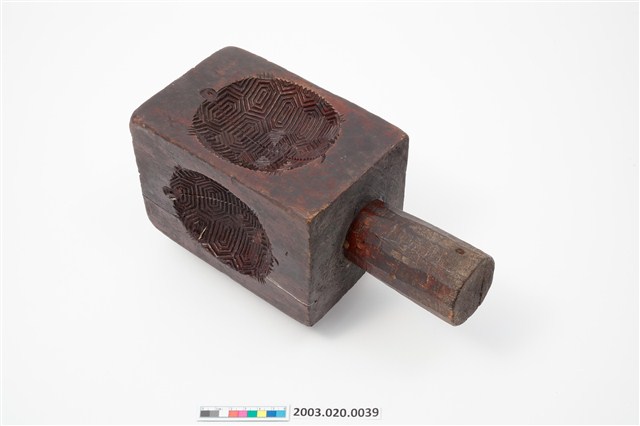 2003.020.0039 四方體四面雕龜花連錢紋帶柄粿糕餅印