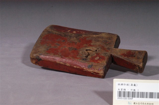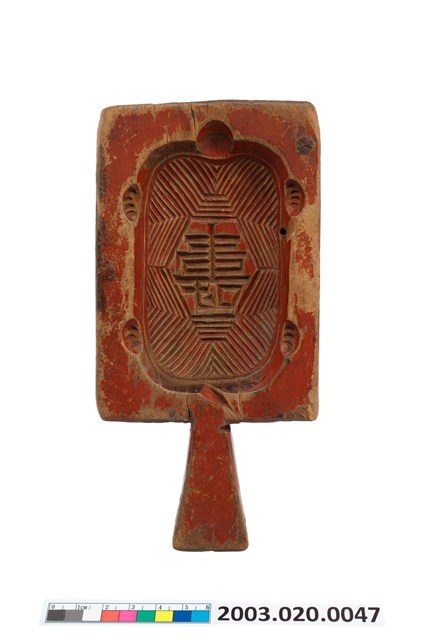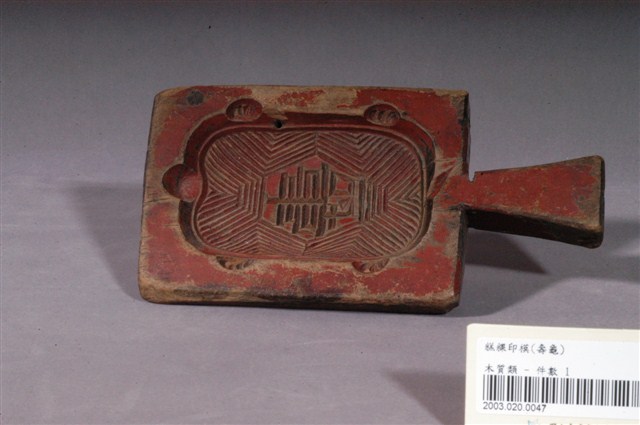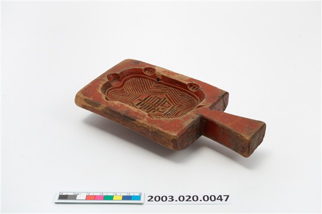 2003.020.0047 朱漆長方形單面雕龜形帶柄粿印