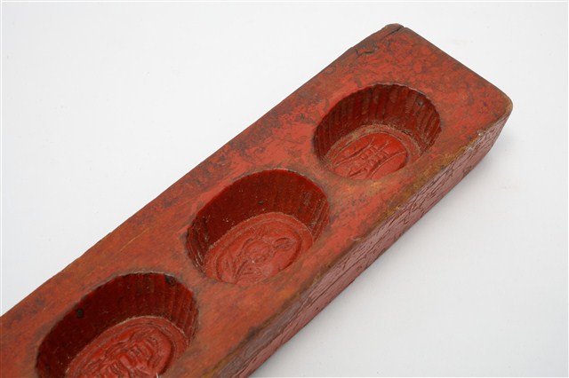 2003.020.0058 朱漆長條板單面雕六枚橢圓花紋糕印