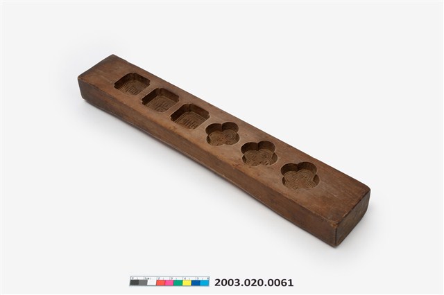 2003.020.0061 長條板單面雕六枚方形與柿蒂形糕印