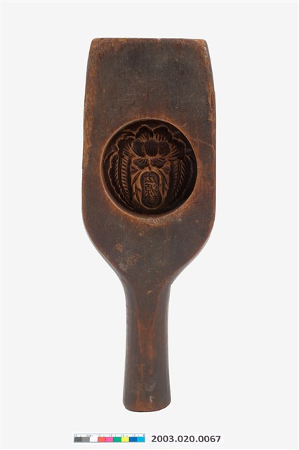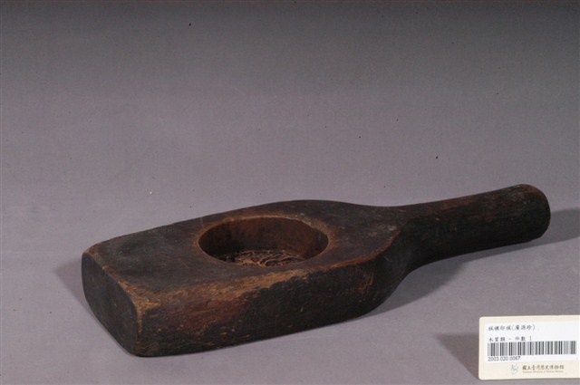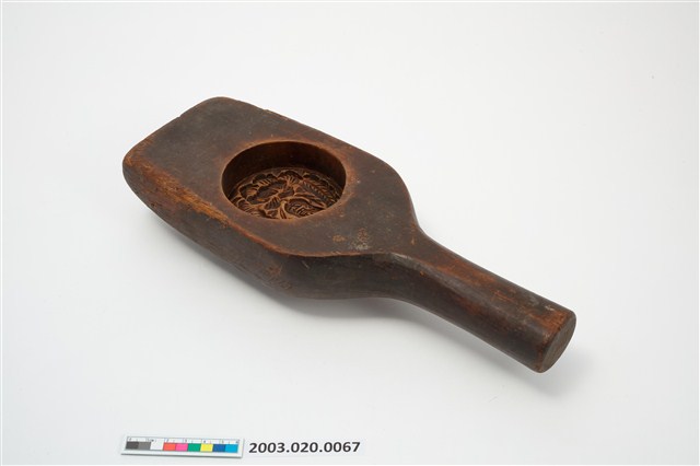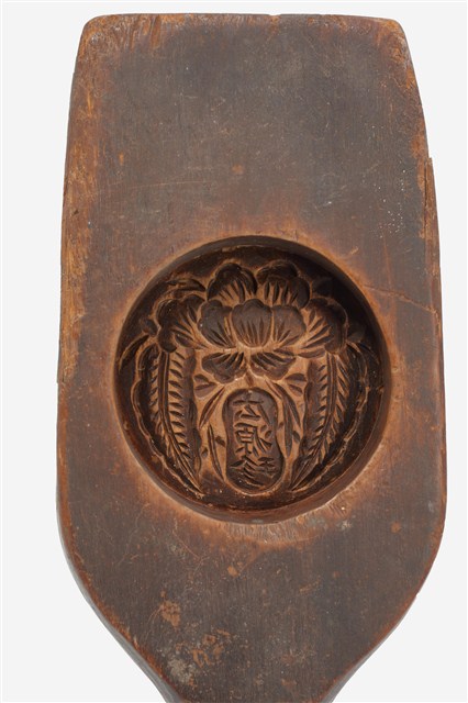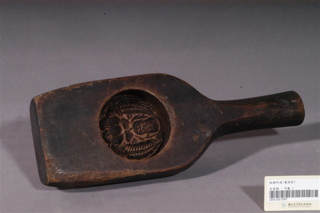 2003.020.0067 酒瓶形單面雕圓形牡丹紋餅印