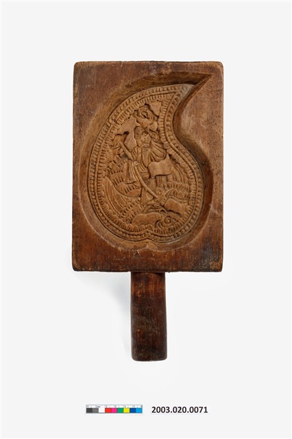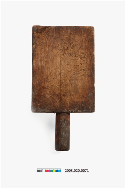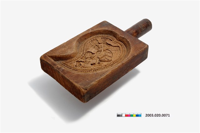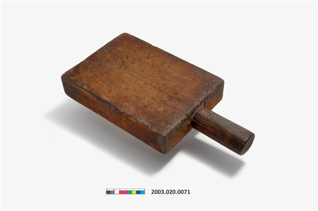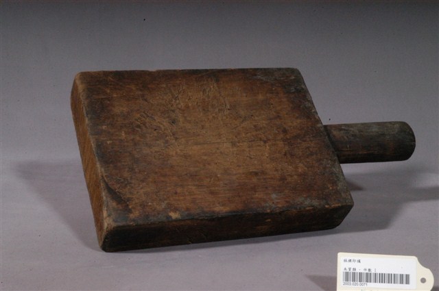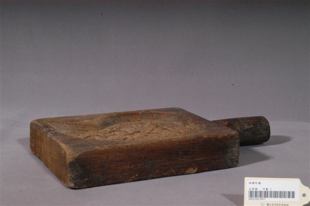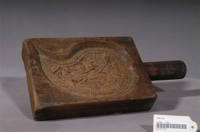 2003.020.0071 長方形單面雕桃形壽仙紋帶柄粿印