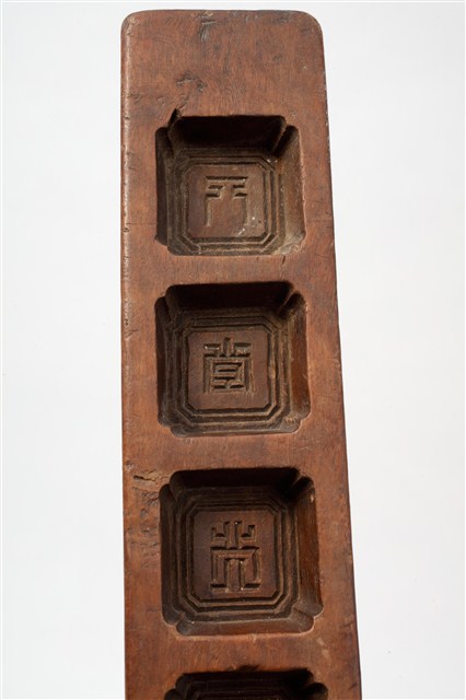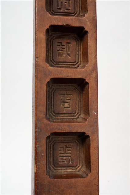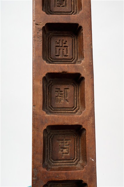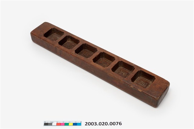 2003.020.0076 長條板單面雕六方格文字紋糕印