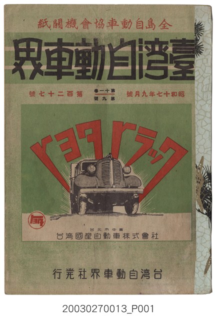 2003.027.0013 井手久男編《臺灣自動車介》第十一卷第九號