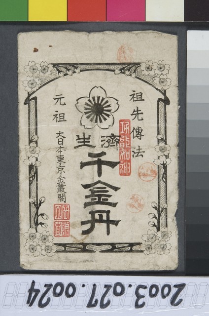 2003.027.0024 祖先傳法濟生千金丹藥用說明袋