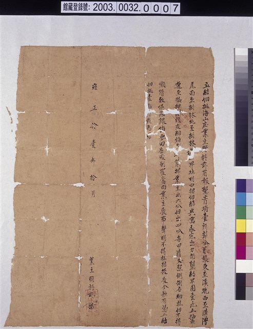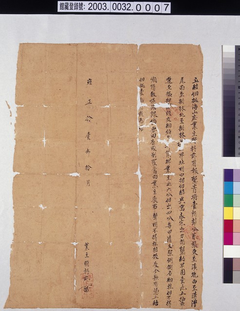 2003.032.0007 雍正11年海山庄業主賴科立結佃批字