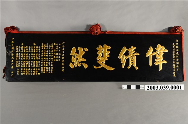 2003.039.0001 民國69年郭慶松分隊長榮調「偉績斐然」匾額