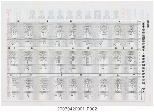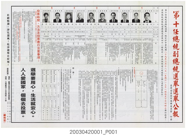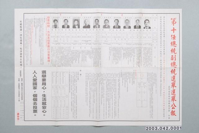 2003.042.0001 臺灣省臺南市選舉委員會印發《第十任總統選舉選舉選單公報》