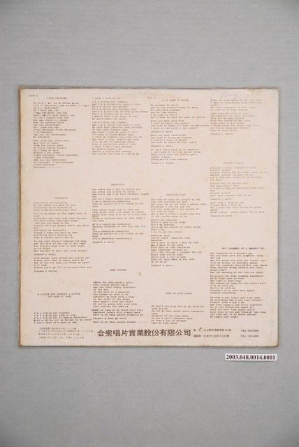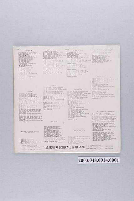 合眾唱片公司出品編號「TD-1864」西洋歌曲專輯《青春樂電視音樂劇全部插曲》