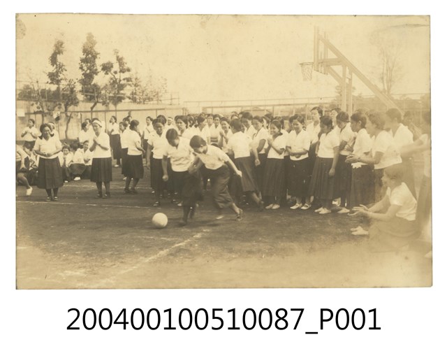女學生踢足球運動爭搶照