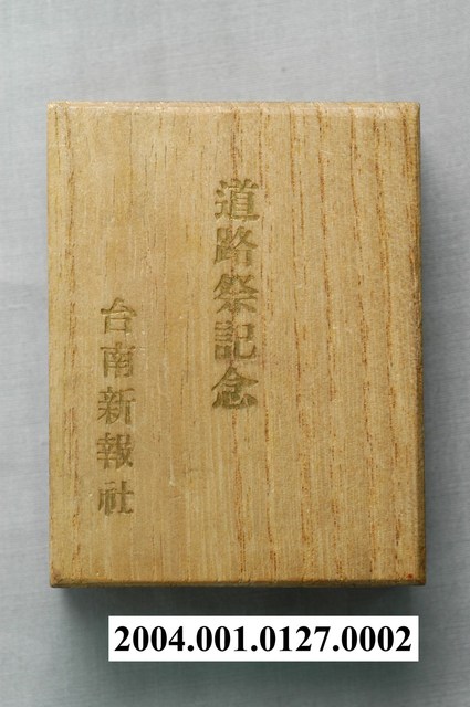 2.此「道路祭」是台南新報社為慶祝台南州(包括今雲林縣、嘉義縣市、臺南市)完成汽車產業道路之建設,於1934年5月6日假大正公園(今湯德章紀念公園)舉辦慶祝儀式。除了儀式外,也與當時臺南大天后宮遶境結合,並於翌日(5月7日)晚間舉辦由臺南有名藝伎與女給變裝,由參加活動者尋找的餘興節目。此外,臺南新報社也於道路祭當天發行〈道路祭記念號〉,完整記載道路祭相關資訊及活動。本文物則為台南新報社頒發給對此次道路工程有功勞者的紀念章,據載共發出3000枚。
