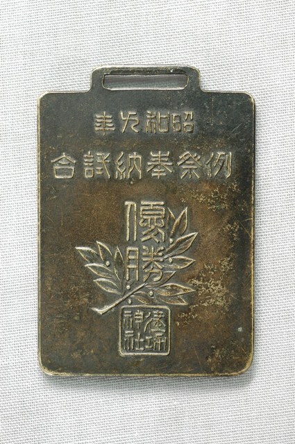2004.001.0139.0001 昭和9年建功神社例祭奉納測驗優勝長方形金屬獎牌