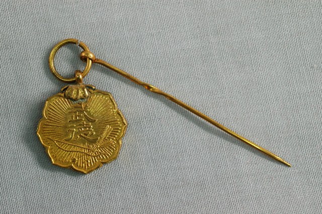 1. 本物件為勳章一枚,物件狀態尚佳,金色勳章上一面鑄有「大日本武德會」字樣,另一面鑄有「武德」二字以及弓與箭之圖樣。2. 大日本武德會是在第二次世界大戰前的日本以振興、教育、彰顯武術、武道為目的而設立的財團法人,以涵養武德及為此而獎勵武術,並順勢振興日本國民士氣為目的。該組織成立於明治二十八年(1895年)4月17日,於昭和二十一年(1946年)10月31日解散。