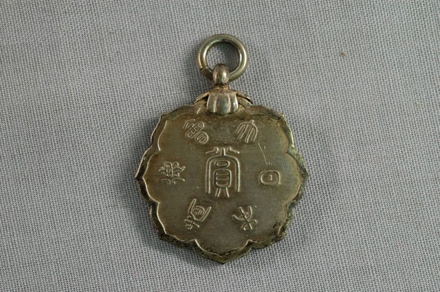 1. 本物件為銀色賞牌一枚,物件狀態尚佳,賞牌上一面鑄有「大日本武德會 」以及中間「賞」字樣,另一面鑄有「武德」二字以及弓與箭之圖樣。2. 大日本武德會是在第二次世界大戰前的日本以振興、教育、彰顯武術、武道為目的而設立的財團法人,以涵養武德及為此而獎勵武術,並順勢振興日本國民士氣為目的。該組織成立於明治二十八年(1895年)4月17日,於昭和二十一年(1946年)10月31日解散。