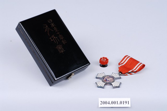 1.此物件為日本赤十字社有功章,為一放置於盒中的勳章,徽章為絲帶以及金屬製徽章本身組合而成,盒上以篆體刻有日本赤十字社有功章等字樣。 2.明治10年(1877),大給恆、佐野常民等人設立「博愛社」,於明治20年(1887)改稱「日本赤十字社」,明治28年(1895)設立「日本赤十字社台灣支部」,是從事人道工作的救助團體。