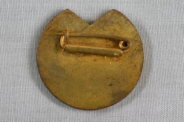 本物件為金屬製紀念章1枚。紀念章為圓形上有V字缺口造型,正面為綠框白底設計,正中央有「勞務者」3字;背面無文字圖樣,裝有1金屬別針。