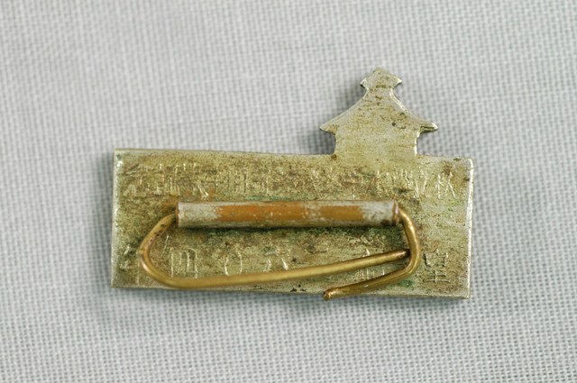 本件為昭和19年(1944)淡水中學校第五屆畢業生紀念徽章,金屬材質。正面有建物浮雕圖案,推測應為該校八角塔,並刻有「淡中」字樣,背面則刻有「淡水中學校第五回卒業記念」、「皇紀二六O四年」字樣。 淡水中學校(今淡江中學)設立於大正3年(1914),前身為清光緒14年(1881),由加拿大長老教會傳教士馬偕(George Leslie Mackay)在淡水砲臺埔興建的淡水牛津學堂(Oxford College),中文校名為「理學堂大書院」。該校學生多為臺籍,修業年限5年,教員多為長老會傳教士。